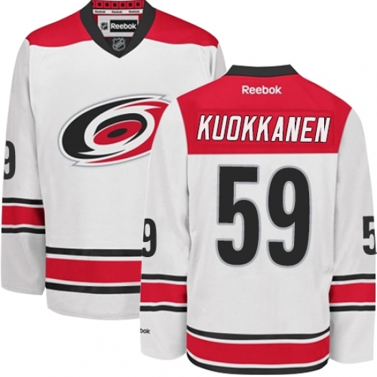 Men's Reebok Carolina Hurricanes #59 Janne Kuokkanen Authentic White Away NHL Jersey