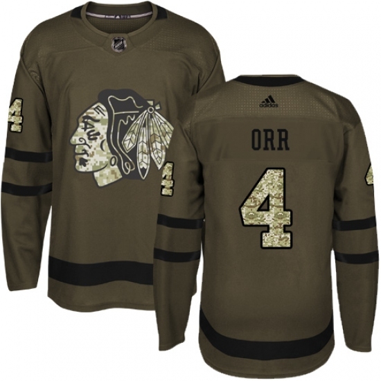 Men's Reebok Chicago Blackhawks #4 Bobby Orr Authentic Green Salute to Service NHL Jersey