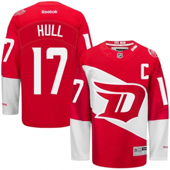 • Men's Reebok Detroit Red Wings #17 Brett Hull Authentic Red 2016 Stadium Series NHL Jersey