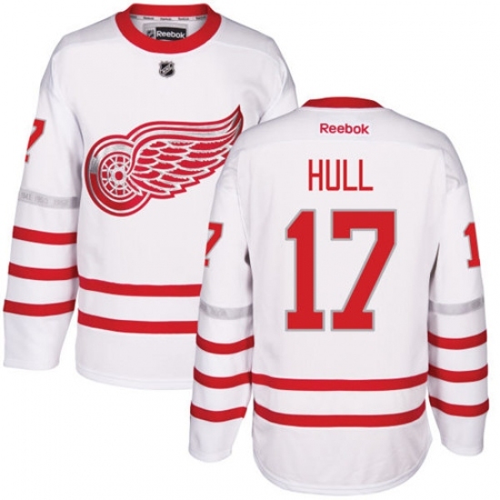 • Men's Reebok Detroit Red Wings #17 Brett Hull Authentic White 2017 Centennial Classic NHL Jersey