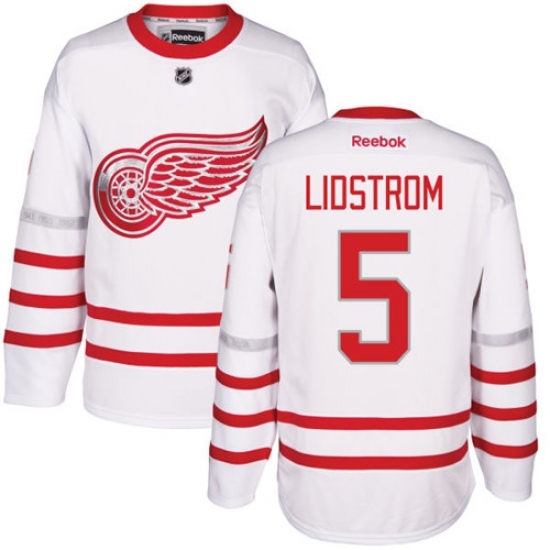 • Men's Reebok Detroit Red Wings #5 Nicklas Lidstrom Authentic White 2017 Centennial Classic NHL Jersey