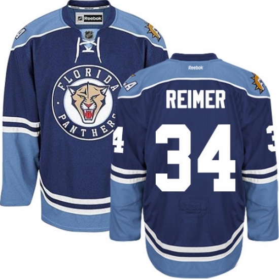 Men's Reebok Florida Panthers #34 James Reimer Authentic Navy Blue Third NHL Jersey