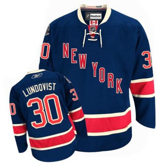 Men's Reebok New York Rangers #30 Henrik Lundqvist Authentic Navy Blue Third NHL Jersey