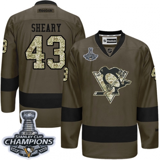 • Men's Reebok Pittsburgh Penguins #43 Conor Sheary Premier Green Salute to Service 2017 Stanley Cup Champions NHL Jersey