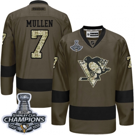 • Men's Reebok Pittsburgh Penguins #7 Joe Mullen Authentic Green Salute to Service 2017 Stanley Cup Champions NHL Jersey
