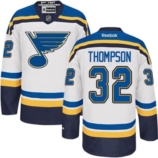 • Men's Reebok St. Louis Blues #32 Tage Thompson Authentic White Away NHL Jersey