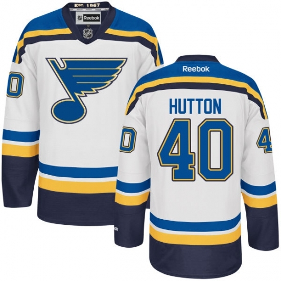 Men's Reebok St. Louis Blues #40 Carter Hutton Authentic White Away NHL Jersey