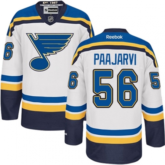 Men's Reebok St. Louis Blues #56 Magnus Paajarvi Authentic White Away NHL Jersey