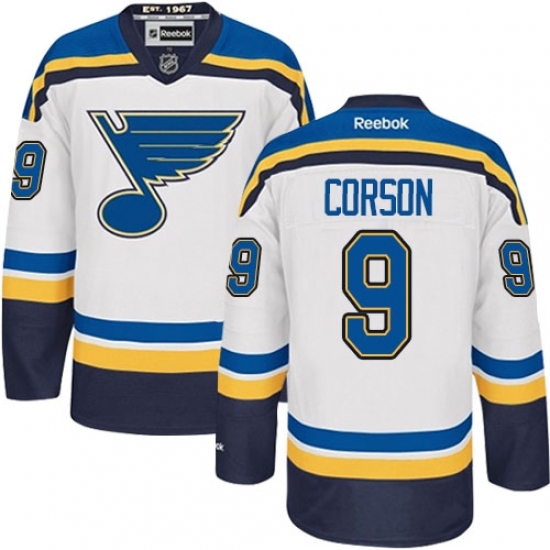 Men's Reebok St. Louis Blues #9 Shayne Corson Authentic White Away NHL Jersey