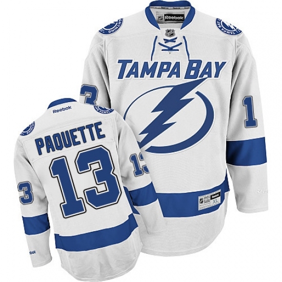 • Men's Reebok Tampa Bay Lightning #13 Cedric Paquette Authentic White Away NHL Jersey