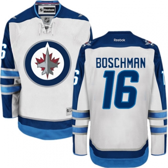Men's Reebok Winnipeg Jets #16 Laurie Boschman Authentic White Away NHL Jersey