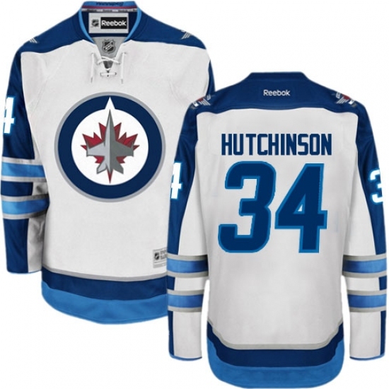 • Men's Reebok Winnipeg Jets #34 Michael Hutchinson Authentic White Away NHL Jersey
