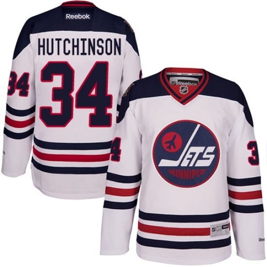 • Men's Reebok Winnipeg Jets #34 Michael Hutchinson Premier White 2016 Heritage Classic NHL Jersey