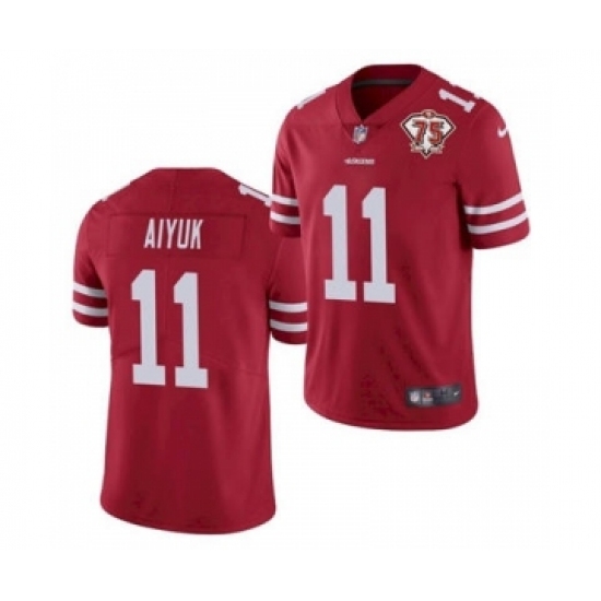 • Men's San Francisco 49ers #11 Brandon Aiyuk Red 2021 75th Anniversary Vapor Untouchable Limited Jersey