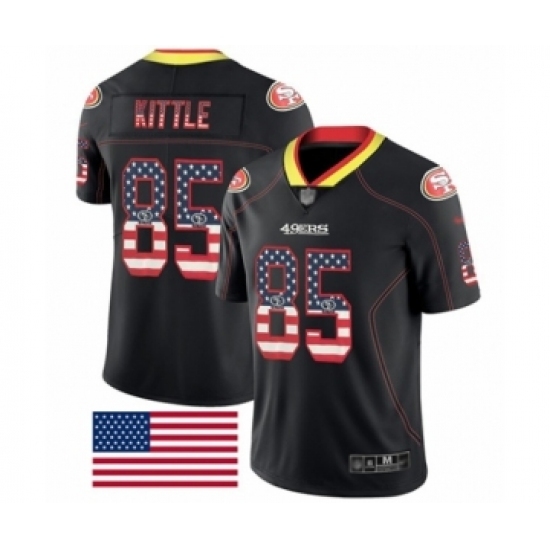 • Men's San Francisco 49ers #85 George Kittle Limited Black Rush USA Flag Football Jersey