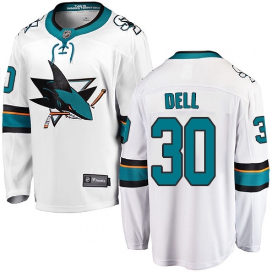 • Men's San Jose Sharks #30 Aaron Dell Fanatics Branded White Away Breakaway NHL Jersey