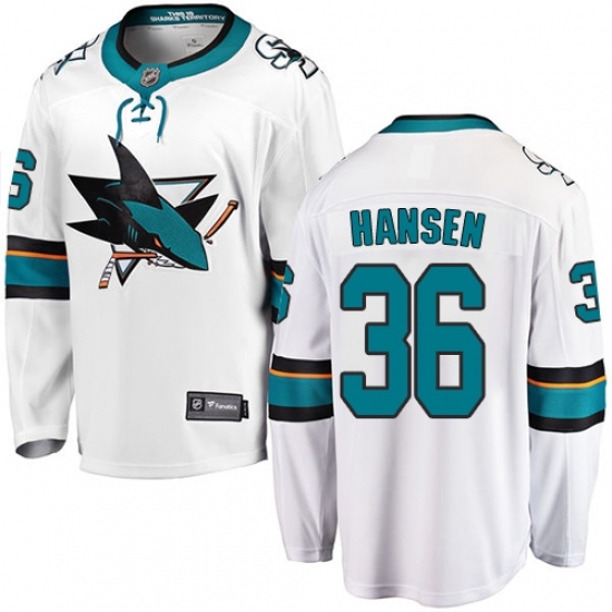 • Men's San Jose Sharks #36 Jannik Hansen Fanatics Branded White Away Breakaway NHL Jersey