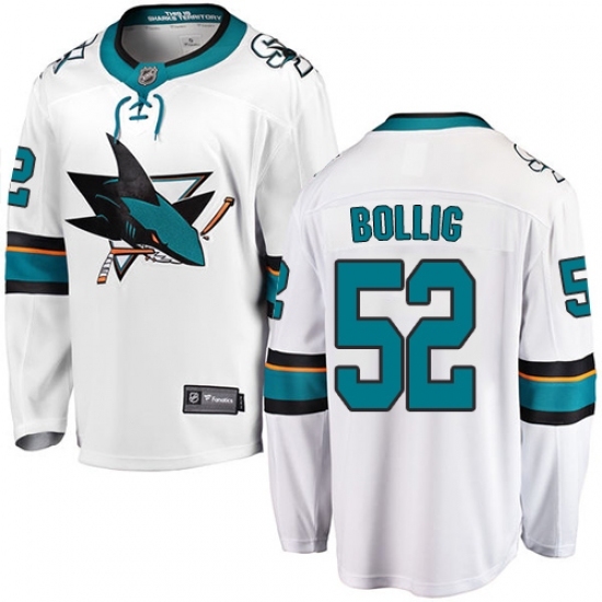 Men's San Jose Sharks #52 Brandon Bollig Fanatics Branded White Away Breakaway NHL Jersey
