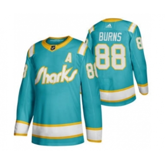 Men's San Jose Sharks #88 Brent Burns 2020 Throwback Authentic Player Hockey Jersey