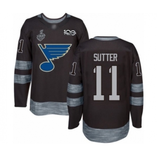• Men's St. Louis Blues #11 Brian Sutter Authentic Black 1917-2017 100th Anniversary 2019 Stanley Cup Final Bound Hockey Jersey