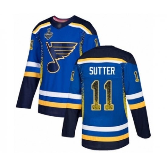 • Men's St. Louis Blues #11 Brian Sutter Authentic Blue Drift Fashion 2019 Stanley Cup Final Bound Hockey Jersey