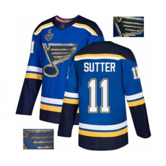 Men's St. Louis Blues #11 Brian Sutter Authentic Royal Blue Fashion Gold 2019 Stanley Cup Final Bound Hockey Jersey