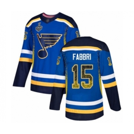Men's St. Louis Blues #15 Robby Fabbri Authentic Blue Drift Fashion 2019 Stanley Cup Final Bound Hockey Jersey