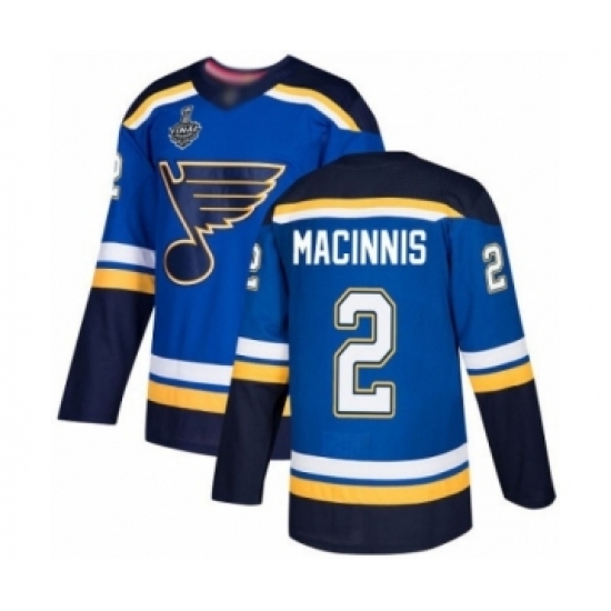 Men's St. Louis Blues #2 Al Macinnis Premier Royal Blue Home 2019 Stanley Cup Final Bound Hockey Jersey