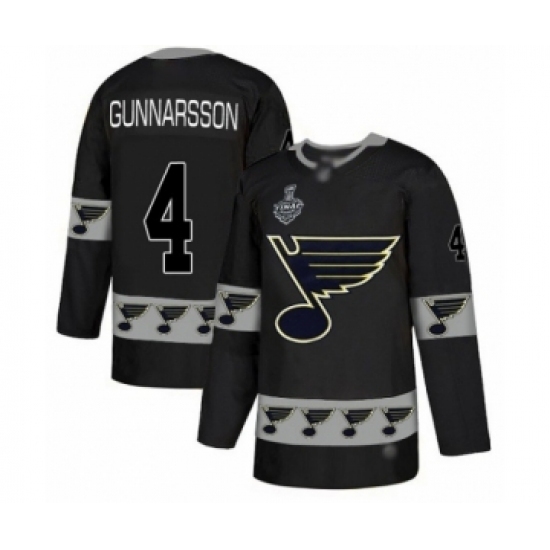 Men's St. Louis Blues #4 Carl Gunnarsson Authentic Black Team Logo Fashion 2019 Stanley Cup Final Bound Hockey Jersey