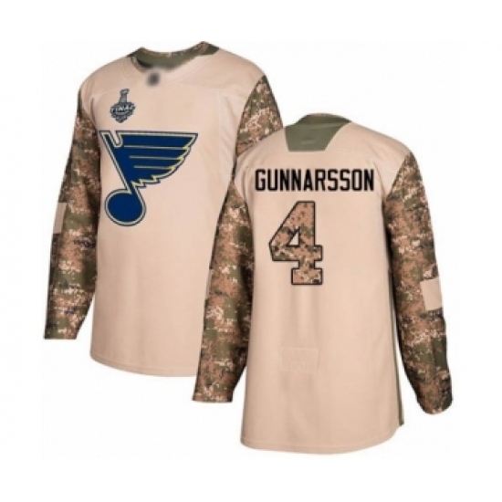 Men's St. Louis Blues #4 Carl Gunnarsson Authentic Camo Veterans Day Practice 2019 Stanley Cup Final Bound Hockey Jersey