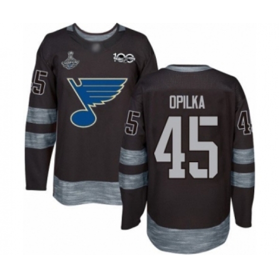 • Men's St. Louis Blues #45 Luke Opilka Authentic Black 1917-2017 100th Anniversary 2019 Stanley Cup Champions Hockey Jersey