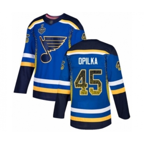 Men's St. Louis Blues #45 Luke Opilka Authentic Blue Drift Fashion 2019 Stanley Cup Final Bound Hockey Jersey