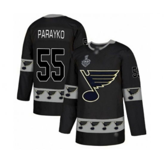 • Men's St. Louis Blues #55 Colton Parayko Authentic Black Team Logo Fashion 2019 Stanley Cup Final Bound Hockey Jersey