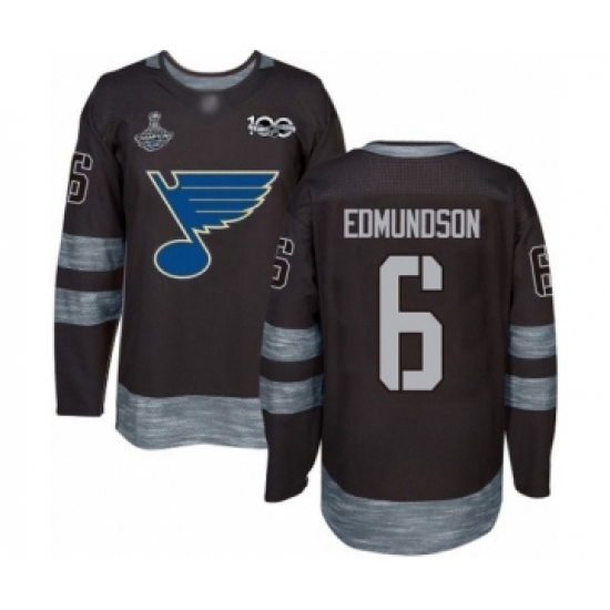 • Men's St. Louis Blues #6 Joel Edmundson Authentic Black 1917-2017 100th Anniversary 2019 Stanley Cup Champions Hockey Jersey