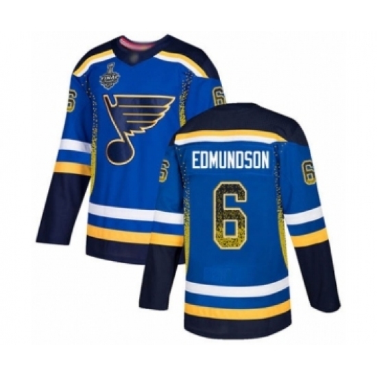 • Men's St. Louis Blues #6 Joel Edmundson Authentic Blue Drift Fashion 2019 Stanley Cup Final Bound Hockey Jersey