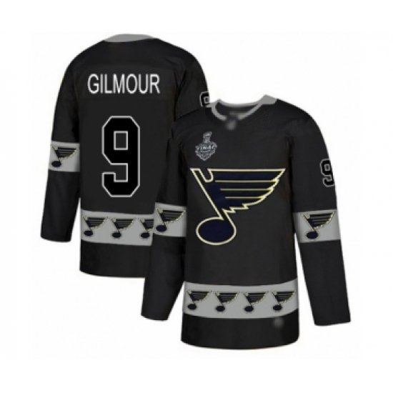 Men's St. Louis Blues #9 Doug Gilmour Authentic Black Team Logo Fashion 2019 Stanley Cup Final Bound Hockey Jersey