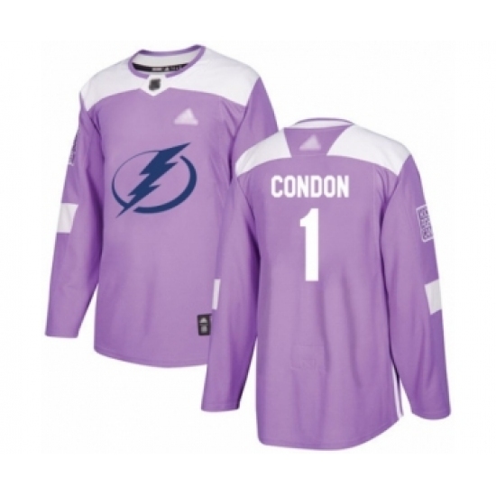 • Men's Tampa Bay Lightning #1 Mike Condon Authentic Purple Fights Cancer Practice Hockey Jersey