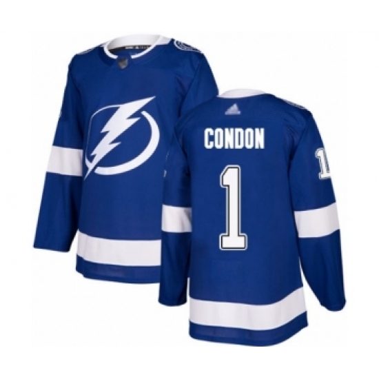 Men's Tampa Bay Lightning #1 Mike Condon Authentic Royal Blue Home Hockey Jersey