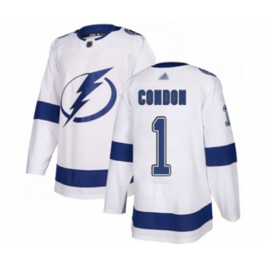Men's Tampa Bay Lightning #1 Mike Condon Authentic White Away Hockey Jersey
