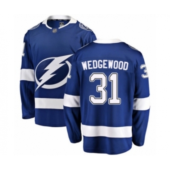 • Men's Tampa Bay Lightning #31 Scott Wedgewood Fanatics Branded Blue Home Breakaway Hockey Jersey