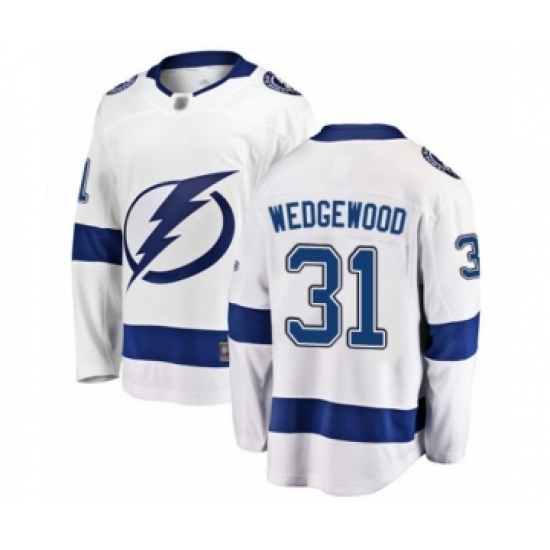 • Men's Tampa Bay Lightning #31 Scott Wedgewood Fanatics Branded White Away Breakaway Hockey Jersey