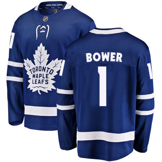 • Men's Toronto Maple Leafs #1 Johnny Bower Fanatics Branded Royal Blue Home Breakaway NHL Jersey