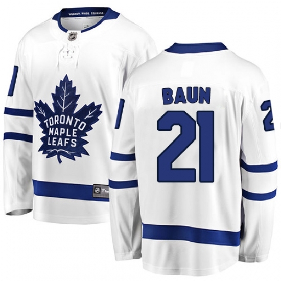 Men's Toronto Maple Leafs #21 Bobby Baun Fanatics Branded White Away Breakaway NHL Jersey