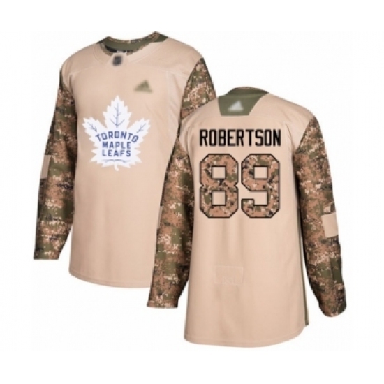 Men's Toronto Maple Leafs #89 Nicholas Robertson Authentic Camo Veterans Day Practice Hockey Jersey