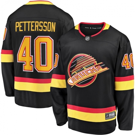 • Men's Vancouver Canucks #40 Elias Pettersson Fanatics Branded Black 2019-20 Flying Skate Premier Breakaway Player Jersey