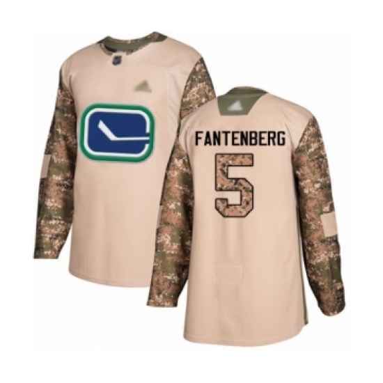 • Men's Vancouver Canucks #5 Oscar Fantenberg Authentic Camo Veterans Day Practice Hockey Jersey