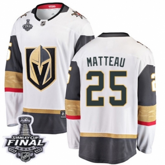 • Men's Vegas Golden Knights #25 Stefan Matteau Authentic White Away Fanatics Branded Breakaway 2018 Stanley Cup Final NHL Jersey