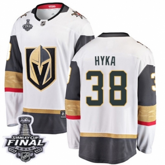 Men's Vegas Golden Knights #38 Tomas Hyka Authentic White Away Fanatics Branded Breakaway 2018 Stanley Cup Final NHL Jersey