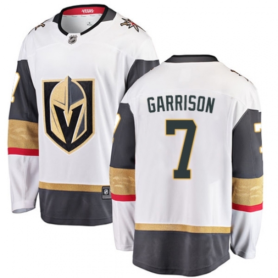 • Men's Vegas Golden Knights #7 Jason Garrison Authentic White Away Fanatics Branded Breakaway NHL Jersey