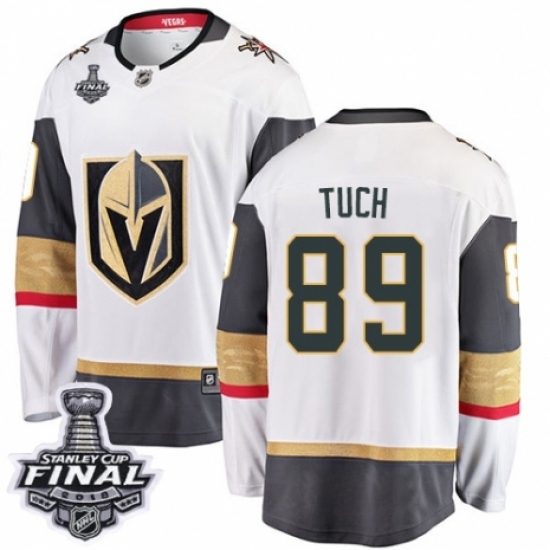 Men's Vegas Golden Knights #89 Alex Tuch Authentic White Away Fanatics Branded Breakaway 2018 Stanley Cup Final NHL Jersey